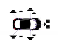 Kaiutinpaketti pitää sisällään etuovien midbassot ja diskantit, takaovien midbassot ja diskantit, keskikaiuttimen kojelaudalle ja 2x8" subbarit vakiopaikoille.