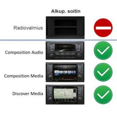 Tämä asennuskitti on yhteensopiva autojen kanssa, jotka ovat tulleet tehtaalta Composition Audio, Composition Media tai Discover Media -soittimella (soittimessa on CAR-nappi auton asetusten muuttamiseen).