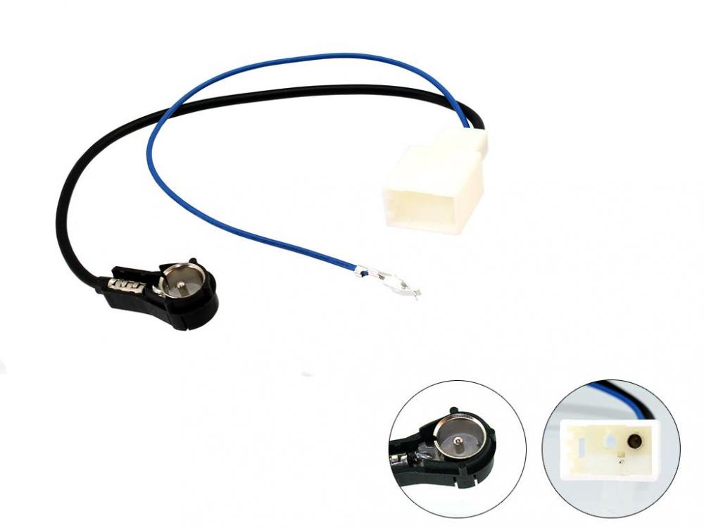 Muuttaa autossa olevan alkuperäisen Toyota antenniliittimen "piippumalliseksi" ISO-antenniliittimeksi jota käytetään joissain jälkiasenteisissa soittimissa (vanhemmat Alpinet, Blaupunkt ym.).