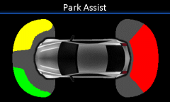 Parkkitutkien etäisyyspalkit näkyvät näytössä.