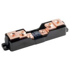 Tämä sulakepesä on todellinen mestariteos. Sen savunharmaa muovisuoja kätkee sisäänsä järeät virtakiskot, joiden sisään sopii 50mm2 kaapeli tai 20mm2 mukana tulevan holkin avulla.
