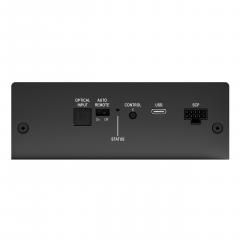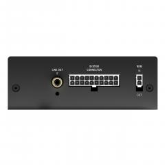 Vahvistimessa on 4 -kanavaa, yksi RCA-lähtö sekä 5-kanavainen DSP-prosessori
